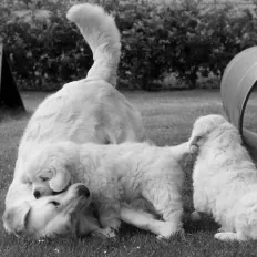 Temperamentet på hundene er også en særdeles vigtig faktor for os. En golden retriever skal være venlig, imødekommende og tillidsfuld. Desuden er det vigtigt for os, at vores hunde er trænbare og i besiddelse af medfødte anlæg for at apportere.